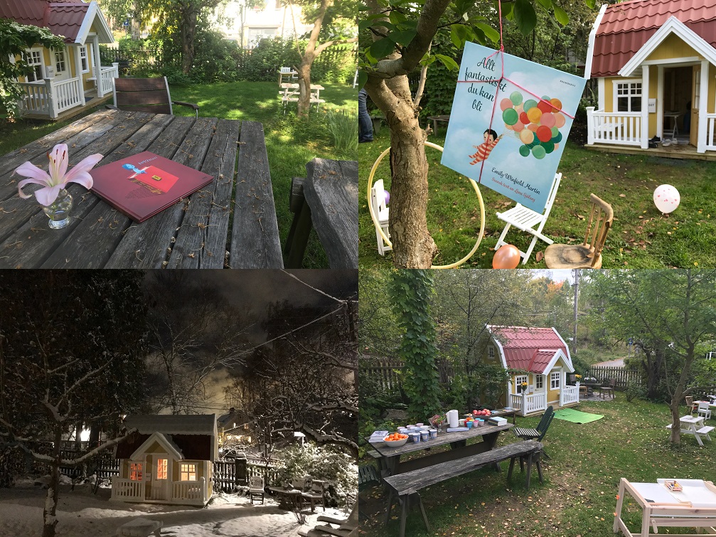 Ilana Eleá: Costumo dizer que a Suécia não precisava da minha biblioteca no jardim, mas eu precisava dessa invenção e por isso a fiz acontecer. Nossa família se mudou para um bairro residencial em Estocolmo, com casas de madeira coloridas, muitas crianças e amplos jardins. Há bosques nos arredores, há lago, um parque para esportes e uma estação de metrô, mas não há uma biblioteca pública. A mais próxima fica a duas estações de casa, o que não é longe e lá tem um ótimo acervo infanto-juvenil, mas algo me dizia que não eram apenas livros que me moveriam. Então, a criação de um espaço literário de convivência, um ponto suspenso que fizesse a interlocução entre o público e o privado, um lugar em que o aroma do café e do bolo assado no forno de casa fosse protagonista de uma atmosfera acolhedora e poética para se ler, ouvir e sonhar histórias foi ganhando corpo e telhado, como mágica.