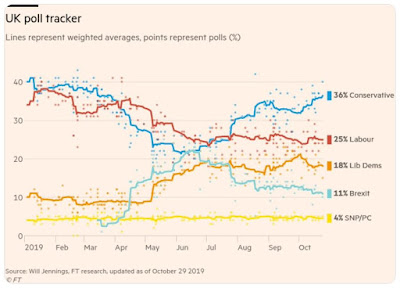 Para já, o Financial Times publicou um gráfico com a média das sondagens dos últimos dez meses, onde se vê que o Partido Conservador mantém uma vantagem de 11 pontos sobre o Labour.