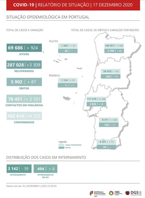 Situação Covid-19 em Portugal, hoje.