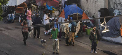 Julga que a imagem é do Rio Janeiro ou São Paulo? Engana-se. A imagem foi obtida no bairro Skid Row, de Los Angeles. Exactamente. A cidade do glamour, onde acaba de ser vendida uma mansão por 500 milhões de dólares (sim, quinhentos). Em Skid Row vivem cerca de 60 mil sem-abrigo, ou seja, mais de 10% do total de sem-abrigo do país, que são 553 mil.
