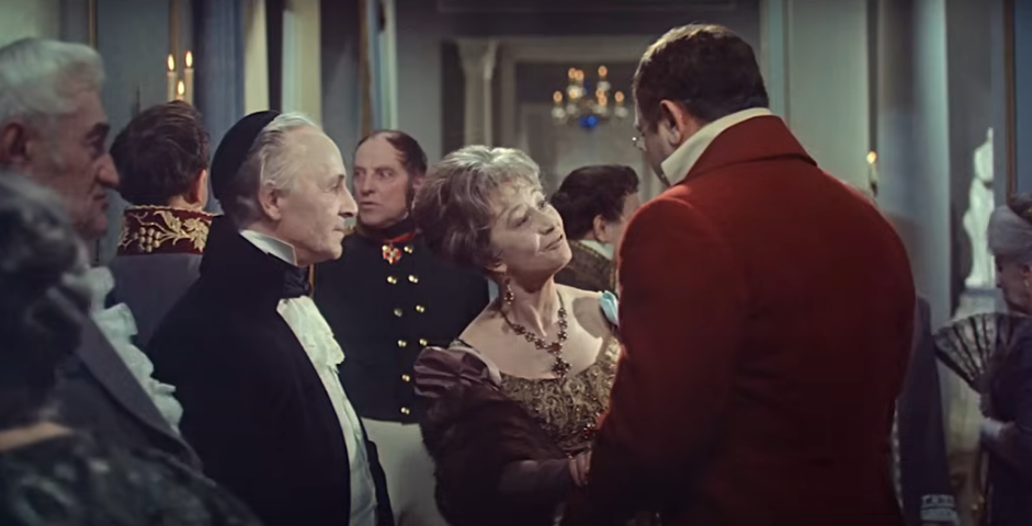 Assim a dona da casa, Ana Pavlovna Scherer, dama de companhia da imperatriz-viúva da Rússia, mãe do czar Alexandre I, recebe em seu salão, em São Petersburgo, em julho de 1805, um de seus convidados, o príncipe Vassili Kuraguin. Que dois aristocratas russos frequentadores da corte imperial conversassem entre si em francês era esperado e natural.