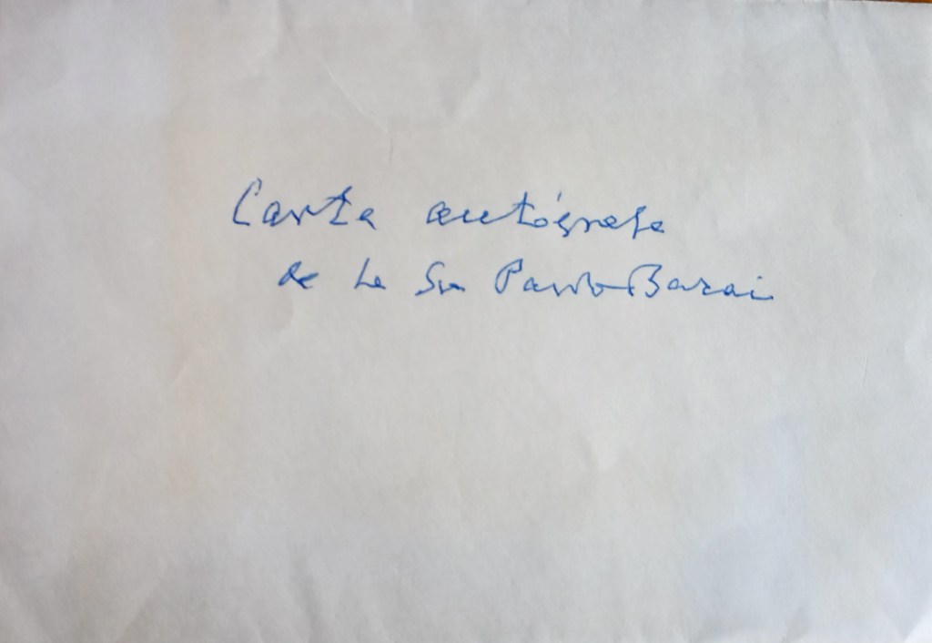 Nun sobre, coa caligrafía inequívoca de Ramón Otero Pedrayo onde escribiu nalgún momento “carta autógrafa de la sra. Pardo Bazán”, custódiase unha tarxeta manuscrita da autora de Los pazos de Ulloa e depositado na actualidade nos fondos da Fundación Penzol, a quen agradezo a cesión deste documento.