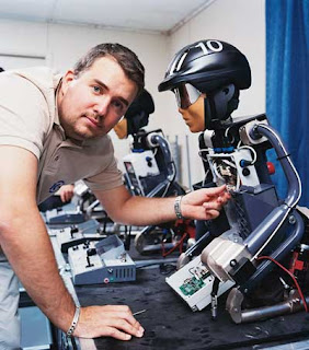 (o cientista Andrew Hetherington e um jóquei-robô)