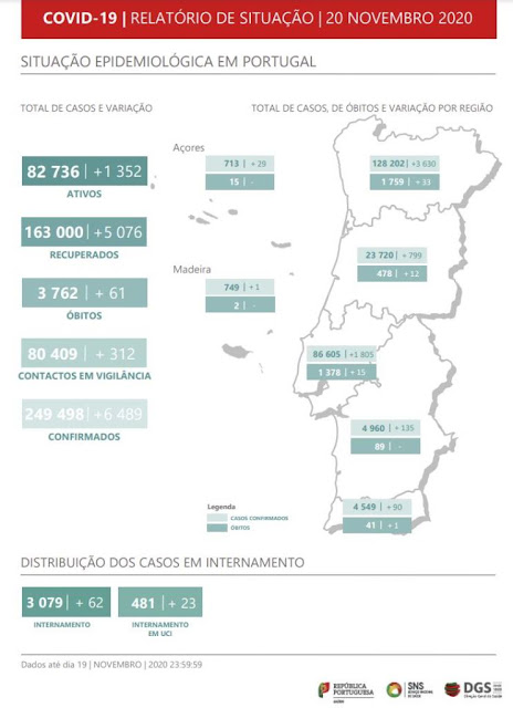 Situação Covid-19 em Portugal, hoje. Mais 6.489 infectados e 61 mortos.