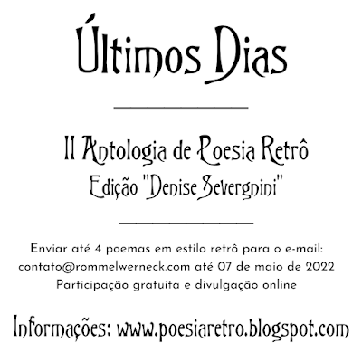 3- Para tal antologia não haverá tema, mas exige-se que os textos estejam em estilo retrô, em formas fixas ou não.