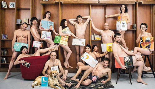 Claire Franek e Marc Daniau, franceses, são os autores de um livro infantil chamado Tous à Poil, no qual personagens (entre elas um polícia e uma professora) a dada altura se põem em pêlo para entrarem no mar e tomarem uma boa banhoca, numa celebração descontraída do corpo. Mas esta visão desinibida da nudez não agradou ao partido de centro-direita UMP, cujo presidente foi à televisão manifestar o seu escândalo por uma professora aparecer nua num livro para crianças, dando o que ele achou um péssimo exemplo. Claro que isso só fez com que a obra chegasse ao Top de vendas em menos de nada e que os editores, autores e livreiros ficassem chocados com essa espécie de censura a um livrinho que não pretendia de modo nenhum ser ofensivo. Vai daí reagiram de forma bastante original, deixando-se fotografar completamente em pelota, cobrindo apenas certas partes do corpo com livros. «Todos nus contra a censura» era a frase que acompanhava o cartaz, que pretendia fazer a defesa dos autores da obra criticada pelo partido de Copé, sublinhando ainda que devem ser acarinhados todos os livros que ampliam horizontes e acendem o debate e que Tous à Poil permitia a todos os cidadãos, fossem eles quem fossem, compreender a informalidade da sociedade contemporânea e resolver os tabus sobre o corpo. E acrescentavam que, independentemente de se ser um médico, uma professora ou um bebé, todos temos rabo e genitais (e ainda bem). Essa é a verdade nua e crua. A foto aí vai.
