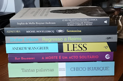 Escolhi seis, todos com justa causa. Chico Buarque, o mais recente vencedor do Prémio Camões, regressa com Tantas Palavras, volume que reúne as letras de todas as canções. Regresso a Reims, de Didier Eribon, é um amargo ajuste de contas. A reedição de O Nu na Antiguidade Clássica, de Sophia de Mello Breyner Andresen, surge no ano das celebrações do centenário da autora. Less, de Andrew Sean Greer, recebeu o Pulitzer de Ficção 2018. A Morte é um Acto Solitário, um thriller de Ray Bradbury, mantém-se aliciante. Last but not least, Serotonina, de Michel Houellebecq, traz de volta o único romancista francês contemporâneo capaz de ombrear com os mais notáveis dos seus pares noutros idiomas.