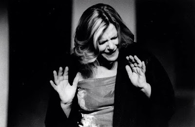 Na imagem, Lia Gama fotografada por Jorge Gonçalves durante a representação de Aos Que Nasceram Depois de Nós, de Brecht, dirigida por Jorge Silva Melo para os Artistas Unidos e Companhia de Teatro de Braga, em 1998.