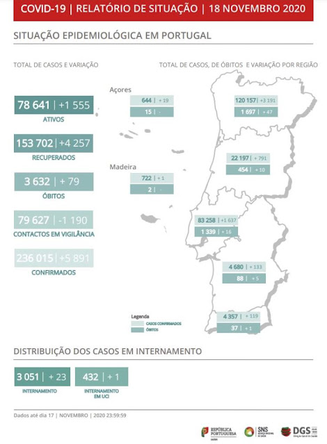 Situação Covid-19 em Portugal, hoje. Mais 5.891 infectados e 79 mortos.
