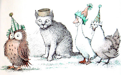 Urso Pequeno vive com a sua mãe numa espécie de bosque ou pradaria, numa casa que tem muito aspecto humano (e a Mamã tem vestidos muito humanos), mas tanto Urso Pequeno como os seus amigos, Gato, Galinha, todos conhecidos pelo nome da sua espécie, não são antropomorfizados, algo que aprecio. As ilustrações são aliás extremamente expressivas e, por esse motivo, compõem uma parte muito importante do livro.