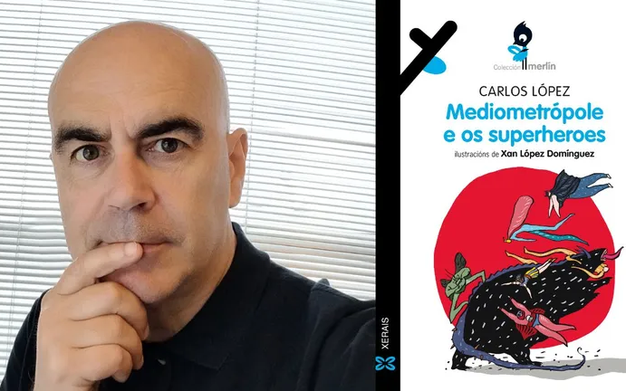 Nesta ocasión Mediometrópole e os superheroes (Xerais), que conta cun fantástico corpus de ilustracións a cargo dun dos grandes neste campo como é Xan López Domínguez, constitúe unha peza que segue a transitar polos valores que caracterizan ao autor, isto é, a súa recorrente perspectiva humorística, en ocasións desas que deixan o sorriso pintado na boca durante moito tempo, unha manifesta axilidade narrativa e a creación dun ocorrente e singular mundo imaxinario que case me atrevería a definilo como desbordante e que, nesta ocasión, percorre unha liña argumental fantástica da que nos fai cómplices desde as primeiras páxinas e que, ademais, goza do valor de nunca resultar previsible.