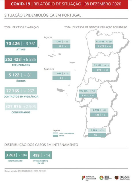 Situação Covid-19 em Portugal, hoje.