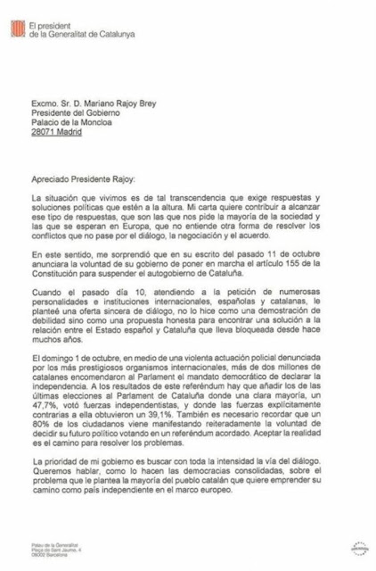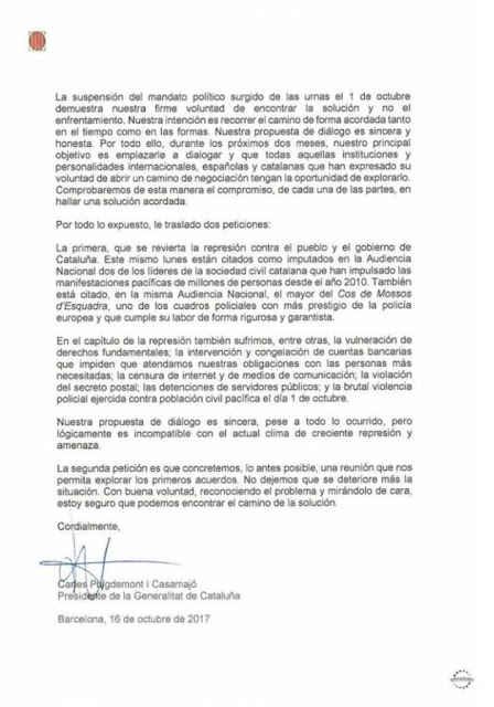 Depois de arrastar a Catalunha para um referendo inconstitucional, e de encenar o espectáculo do passado dia 10, Puigdemont não é capaz de assumir os seus actos. À pergunta de Rajoy sobre se declarou ou não a independência unilateral, responde com um pedido de reunião urgente. Devia tê-lo feito há dois meses. A carta que enviou a Madrid é o retrato de alguém que deu um passo maior que a perna.