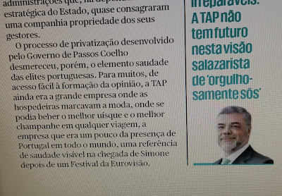 O artigo é sobre a TAP e contra o apoio do Estado à companhia. São opiniões, não comento.