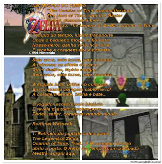 TENDÊNCIA: Soneto decassílabo heroico inspirado num jogo de vídeo game; heroísmo épico; Triforce: poder, coragem, saber; aliteração no 1° terceto representando o barulho da espadaNO TEMPLO DO TEMPO