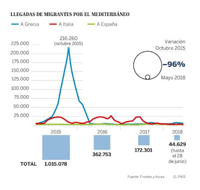 Este gráfico é eloquente. Sobre o fundo da questão: eram 04:30 da madrugada quando os líderes da UE acordaram estabelecer, fora de território europeu, centros de acolhimento de imigrantes. A ideia é facilitar a triagem: os imigrantes à procura de trabalho são devolvidos à origem, os refugiados políticos que comprovarem essa condição (e só esses) podem candidatar-se a visto de entrada na UE. A monitorização dos centros seria feita pelo ACNUR.