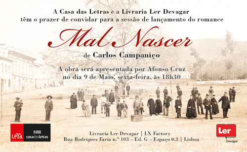 Hoje será distribuído e posto à venda um belíssimo romance que esteve entre os finalistas da última edição do Prémio LeYa. Chama-se Mal Nascer, escreveu-o o alentejano Carlos Campaniço e conta, alternadamente, a infância de um mal-nascido e a sua vida adulta como médico na pequena vila donde fugiu aos maus-tratos de muitos que lhe queriam mal (entre eles, o padrasto) e aonde regressa muito mais tarde, fugido aos absolutistas (é um liberal assumido), para se vingar. Porém, ao contrário do que esperava, a verdade é que ninguém reconhece Santiago tantos anos depois, nem mesmo os seus piores inimigos; e, pela sua posição, todos o enchem de vénias e salamaleques e até lhe arranjam noiva na rapariga cujos pais foram os principais responsáveis pela terrível meninice que ele teve. Mal-entendidos à parte, a descrição da vida tremenda de Santiago como guardador de porcos e enteado mal-amado numa vila dominada por um latifundiário amargurado com a morte do filho varão e a narrativa dos seus amores por uma rapariga casada que o ajuda no consultório estão cheias de passagens maravilhosas que compõem uma obra com suspense até à última página e cheia de peripécias que nunca deixam quebrar o ritmo. Amanhã, no lançamento, Afonso Cruz apresentará o romance e, aposto, há-de ter muito para dizer. Se quiser, apareça por lá.