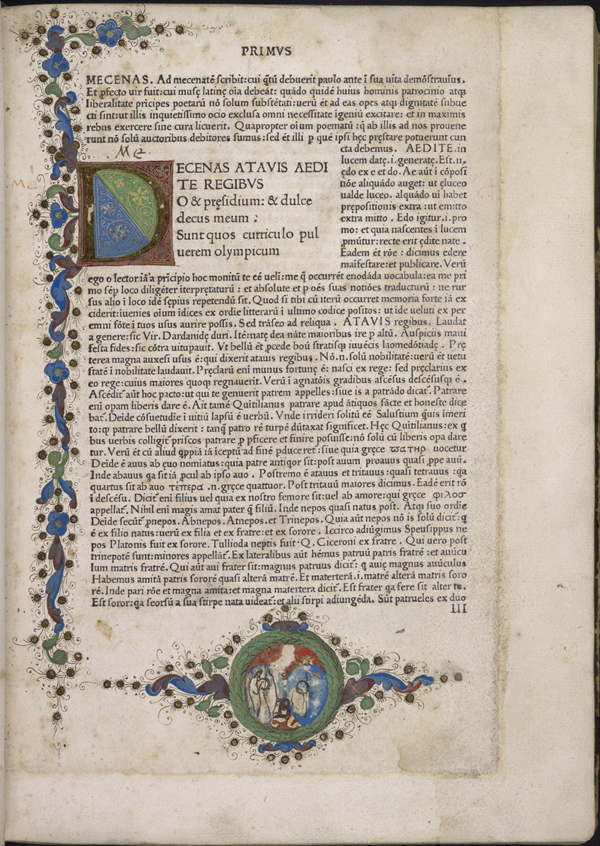 Edição da obra de Horácio pelo florentino Cristóforo Landino (1482): na imagem, início da primeira ode com os comentários ao redor.