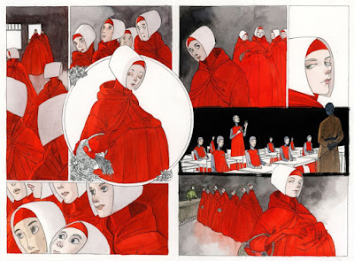 Já tendo visto parte da série da Hulu, tinha grande interesse em descobrir o rumo que a adaptação de Renée Nault ia tomar ao adaptar e ilustrar a obra de Margaret Atwood. Ao contrário da série, aqui, segue-se fielmente o original, capturando maravilhosamente o sentimento da narrativa - o horror, a resistência crescente, a rebelião que não desiste.