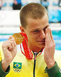 Passei estes dias tomado pelo espírito olímpico. Ia dormir às 3 da manhã, depois de acompanhar esportes que não compreendo, como o handebol ou a natação (até hoje não sei quantos metros tem aquela piscina, nem quantas vezes o nadador tem que percorrê-la). E acordando às 7 para ver o futebol. Só me arrependi no dia de Argentina 3x0 Brasil, mas também, por essa eu já esperava. Já não boto fé na Seleção titular de Dunga, quanto mais nos vestibulandos!...