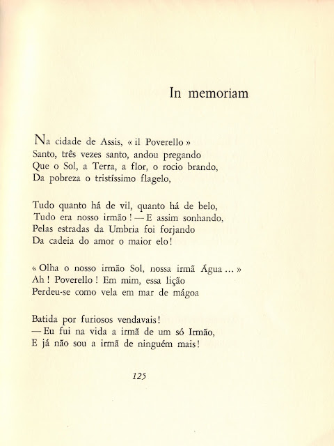 O poema desta semana pertence ao livro póstumo Charneca em Flor, concluído em 1929, mas só publicado em 1931, por iniciativa de Guido Batelli, o professor italiano da Universidade de Coimbra de quem foi próxima. A imagem foi obtida a partir da 12.ª edição integral de Sonetos, publicada pela Livraria Tavares Martins, do Porto, em 1968.