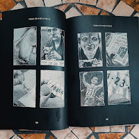 Uma novela gráfica sem palavras pode não ser algo inédito para mim, mas a técnica de "raspar" com uma lâmina uma tela preta de modo a descobrir a camada branca por baixo é algo que nunca esperei ter o detalhe e emoção que O Número 73304-23-4153-6-96-8 me transmitiu, os sentimentos, as acções, mais ainda sem palavras, numa visão criativa sem os limites da linguagem (dá a impressão, nesta obra em particular, que palavras poderiam atrapalhar).