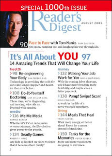 A revista avalia ter hoje um público leitor de 41 milhões de pessoas; imagino que este número se refira aos EUA, visto que há edições em outras 19 línguas, vendidas em mais de 60 países, inclusive o Brasil. É uma revista TV, uma revista de variedades que corresponde bem ao gosto por tudo que é rápido, superficial mas informativo, colagem de fatos e opinião, humor, utilidades, conselhos práticos, pílulas de auto-ajuda, ficção e não-ficção misturadas. O que me espanta não é que tenha chegado aos mil números, é que tenha formatado tantas revistas que vejo hoje nas bancas, e tenha sido engolida por elas.