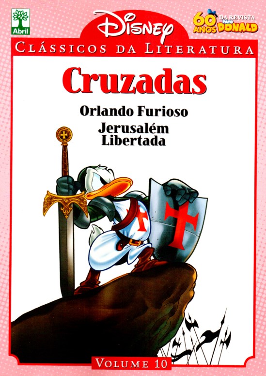 Depois de um tempo sem dar as caras no blog, Os Clássicos da Literatura Disney voltam com força total. Neste décimo volume, temos como tema as Cruzadas. A primeira história, Donald Furioso, é baseada no épico italiano Orlando Furioso. Na HQ Donald é transportado para a Idade Média por brincadeira da bruxa Vanda. O herói deve salvar uma princesa para provar seu valor a Pato Magno (Tio Patinhas); depois, por obra da bruxa Vanda novamente, a Princesa fica com o escudeiro e Donald fica com a fúria e a perda de juízo.. História interessante e divertida, os desenhos são simples, mas as cores vivas ajudam a dar um toque legal aos quadrinhos.