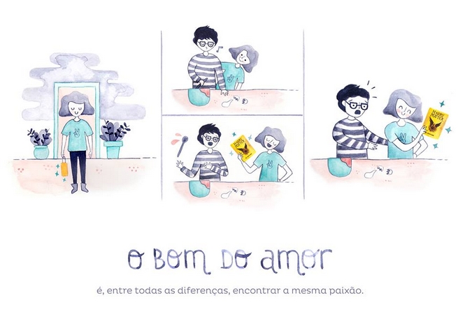 O Bom do Amor, antes de virar esse livrinho fofo, começou sendo uma webcomic produzida pela Editora Rocco, com novas postagens às segundas e quintas-feiras. As ilustrações em aquarela são da talentosíssima Laís Soares, com texto de Chris Melo, autora dos livros Sob a Luz dos Seus Olhos e Sob Um Milhão de Estrelas.