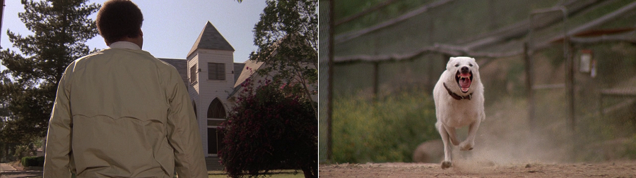 Cão branco, portanto, filme derradeiro. Todos os temas fullerianos estão aí reunidos, sem um pingo de fanfarrice, um filme que somos obrigados a encarar de maneira semelhante à de um personagem fulleriano cuja única preocupação é enfrentar a adversidade sem trégua que regula seu destino. Encarar: é um grande cinema de rostos, de fácies, de epidermes, suadas e reluzentes, de humores exsudados, e quase um bestiário [3] que a câmera desvenda. A única emoção é a transpiração. Nunca se transpirou, gotejou, suou, encharcou a camisa, enquadrou de tão perto a pele, seus reflexos foscos e brilhantes como no cinema de Samuel Fuller. A pele, o couro. Mas um cão não transpira (no limite, seu único humor: ele baba). Fuller precisa encontrar outra coisa, algo mais árido, seco. Cão branco é esse filme depurado até o osso, rente, uma obra de soalheira e poeira. De uma fatura e de uma luz quase insípidas, é praticamente uma obra sem autor — ou então cuja única mão anônima**** seria a desse cão sem nome. Cão branco, filme besta. Enquanto o cinema (os anos 1970) havia liberado sua violência, assumida e desenfreada, demonstrativa e inteligente, Fuller, ao contrário, ele que havia, senão inventado, ao menos antecipado esse derramamento de efeitos, de (primeiros) planos brutais, de ruídos ensurdecedores, de fúria exibida e de sangue [4], terá optado desta vez por um estilo a minima imperturbável. Cão branco, de todos os seus filmes, é o mais sóbrio, o mais simples e, portanto, o mais belo. No universo de caos, de transvio e de extremos contrastados da filmografia, desenrola-se, pela primeira e última vez, um je ne sais quoi de sucinto, de retilíneo e depurado, de densificado no assunto como nunca, de ao mesmo tempo estranhamente sereno e pavorosamente trágico, que somente a sensação do irreparável pode proporcionar. Aqui a violência é tão mais sensível que ela é abordada com a reticência de uma tristeza inédita, em uma espécie de calma e de sentimentalismo. Resta, então, o sentimento da violência, decuplicado.