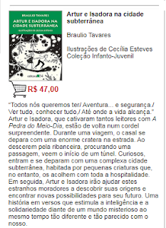 No presente caso, o livrinho é Artur e Isadora na Cidade Subterrânea, lançado pela Editora 34, de São Paulo, com a qual venho mantendo uma saudável parceria há mais de trinta anos.