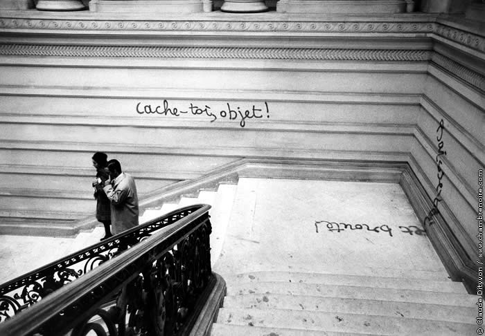 Durante os acontecimentos do Maio de 68, na França, popularizou-se o ato de protestar por meio da inscrição de palavras de ordem nas paredes de instituições importantes. Um desses grafites, presente nas escadarias da Sorbonne Université, “Esconda-se, objeto!”, é lido como um rechaço à forma como a racionalidade moderna reduziu a categoria do sujeito nas ciências.
