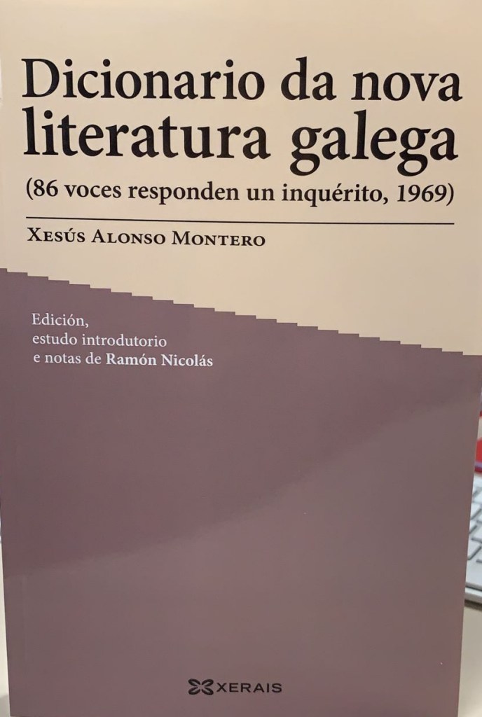 Complétase unha semana de grandes alegrías ao ter na man un exemplar do Dicionario da nova literatura galega, de Xesús Alonso Montero: un volume deses que chegan inicialmente á editorial antes da súa distribución e comercialización que se producirá, conxecturo, a comezos do vindeiro mes de novembro.