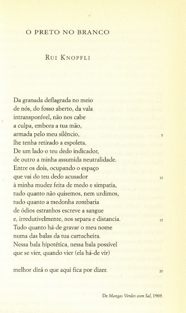 UM POEMA POR SEMANA — À laia de antologia pessoal, começo hoje a publicar um poema por semana. Para abrir escolhi Rui Knopfli (1932-1997), uma das grandes vozes da poesia de língua portuguesa do século XX.