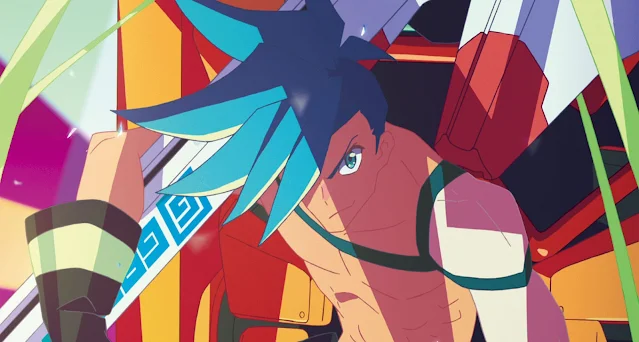 Para começar, vale dizer que esta é uma produção do estúdio Trigger, que tem um estilo bastante próprio e reconhecível. Eles também usam de várias formas e muletas narrativas em suas histórias, o que acaba fazendo com que elas se tornem igualmente identificáveis e, eventualmente, previsíveis (não julguem, a Pixar faz a mesma coisa). Neste caso, o estilo foi elevado à potência máxima e a história se segurou onde conseguiu.
