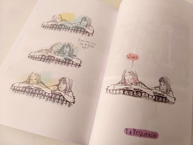 Acredito que o divórcio muda completamente o curso da vida de uma pessoa por motivos óbvios. Nesse sentido, foi muito interessante acompanhar as redescobertas de Margaux, principalmente porque a narrativa, apesar de seguir uma linha temporal, é composta por várias tirinhas, como se fossem lapsos de memória da autora. Achei o formato bem legal, porque tornou a leitura muito mais fácil e dinâmica.