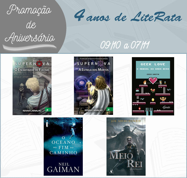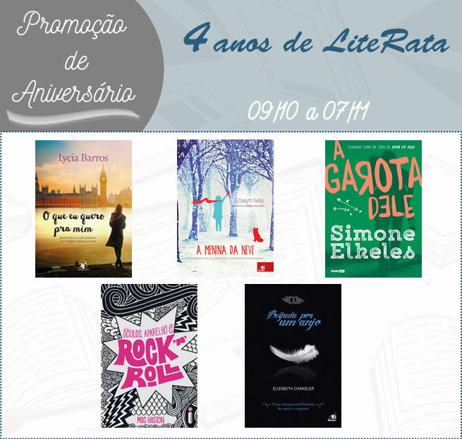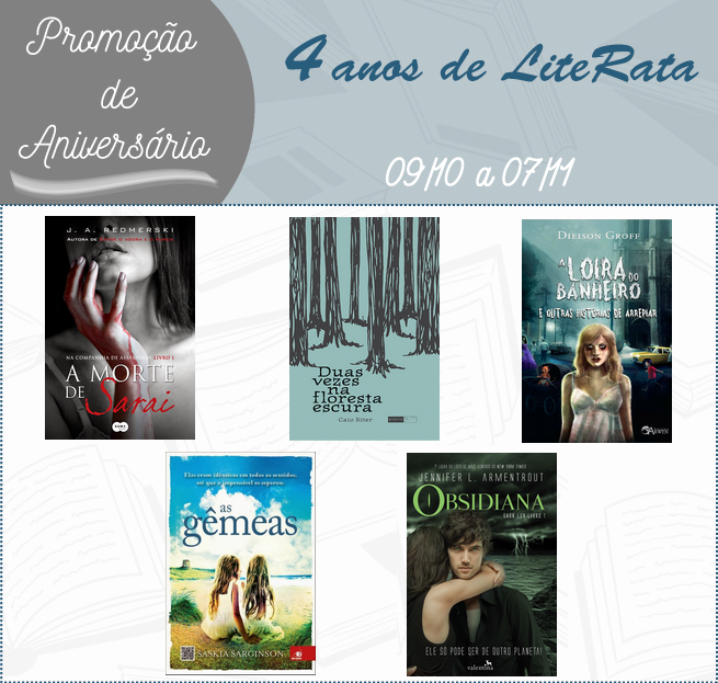 Hoje o blog LiteRata completa 4 anos de existência e, para comemorar, chamou alguns amigos blogueiros para, junto dela, fazerem um sorteio bem bacana para presentear os protagonistas dessa história, e sabe quem eles são? Isso mesmo, vocês! O sorteio foi dividido em três kits que é para não assustar ninguém com o tamanho do formulário, participem e divirtam-se, mas não esqueçam das regras hein!