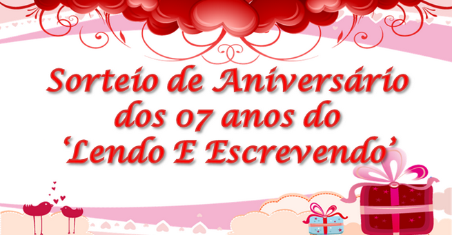 Neste mês o Lendo & Escrevendo completa 07 anos como blog literário e, para comemorar, se juntou com vários amigos para presentear os leitores com um bocado de livro legal. Obviamente o Roendo Livros não ficaria de fora dessa! Para concorrer às obras, e só conferir o regulamento e preencher os formulários.