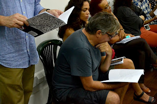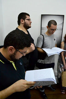Com efeito, no cotidiano do «Laboratório», o cuidado em não transmitir um ensinamento ou infligir um manual de escrita. A jornada foi desde sempre outra, a mais simples e direta, traçar encontros com o intuito de viver-juntos o comum de uma experiência com a literatura. Ou seja, ler, ouvir, viver a intensidade do texto literário. Povoar o branco, semear afetos. Perceber as cintilações da prosa e a ideia da poesia, e vice versa. Exumar os silêncios, experimentar, ouvir, criar situações possíveis para a escrita que vem. E nesse transcurso – graças à força da comunidade –, os lampejos e derivações do escrever.