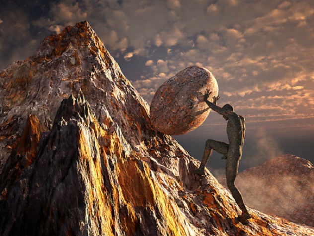 Só agora entendi um conto presente no meu próprio livro, “Tema de Sísifo”. Um homem acorda em uma casa à beira de um rochedo. Passa o dia de forma normal, usufruindo de pequenos prazeres: os raios do sol na parede caiada, uma tigela de arroz, uma sombra inoportuna. Contudo, sua alma não se encontra pacificada; em meio aos ensinamentos deixados por Pitágoras, o homem sente que alguma coisa está fora da ordem. No meio da tarde, caminha na beira da praia; percebe a silhueta distante de pessoas a lhe vigiar, e machuca o pé. Tem a súbita noção de que aquele dia já aconteceu antes. Sente-se invadido pelo terror ao notar que está preso em uma situação impossível de ser vencida, que cada dia será igual ao anterior e ao posterior, pois ele é um “Deus aprisionado na própria armadilha”, o Sísifo por excelência.