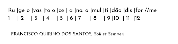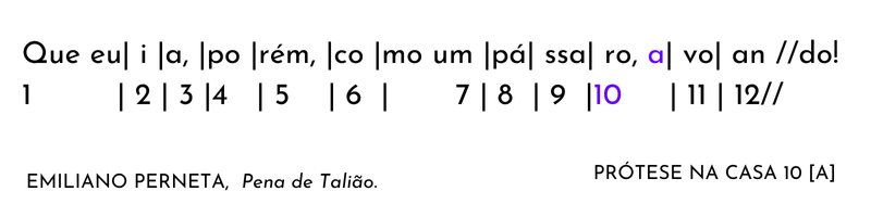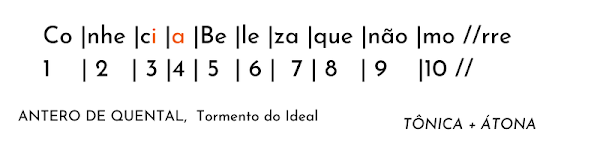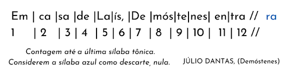 Como podemos notar, o verso inicial do soneto Demóstenes possui a mesma quantidade de sílabas gramaticais e poéticas, obviamente se desconsiderarmos a sílaba (RA), teremos doze sílabas. Este é um caso de coincidência porque outros fenômenos ocorrem no ritmo do verso, da qual falarei na próxima seção.