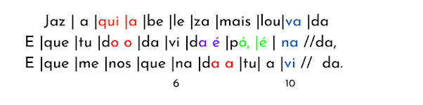 fazer a conversão de hiato em ditongo (sinérese). Observem o primeiro verso do