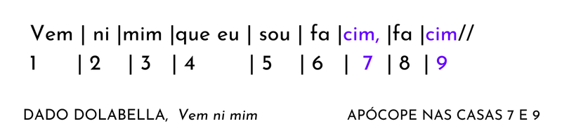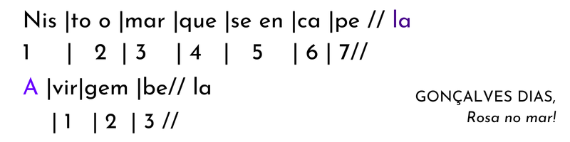 Abaixo, o verso finaliza com palavra paroxítona: descarte de apenas uma sílaba. Chamamos este tipo de verso de verso grave: