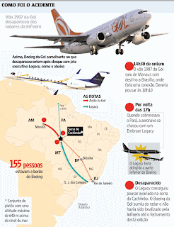Um artigo de William Langewiesche na revista Vanity Fair procura dar um balanço, depois que a poeira assentou, nos fatos que conduziram ao acidente entre um Boeing da Gol e um avião Legacy pilotado por dois norte-americanos, em 2006. Foi um dos maiores acidentes aéreos já ocorridos no Brasil, e tornou-se ainda mais grave porque a culpa acabou sendo dividida entre os controladores de vôo brasileiros (mal pagos, mal preparados, estressados, etc) e os dois norte-americanos, que pilotavam de forma talvez descuidada um jatinho de luxo destinado a executivos de multinacionais. O avião da Gol, com seus cento e tanto passageiros, foi a vítima azarada dos erros e descuidos cometidos por esses dois grupos de técnicos.