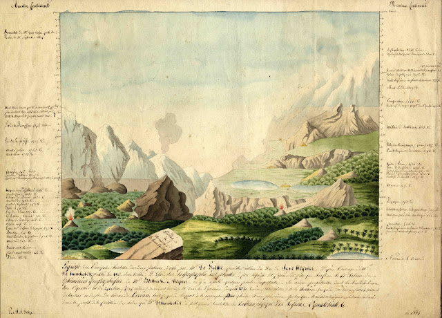 um desenho de 90 por 60 centímetros representando o Chimborazo em corte