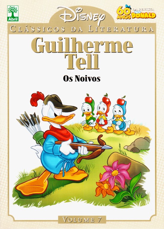 Na primeira HQ do volume somos apresentados a uma vila suíça do século 14, onde Donald tell vive, com os sobrinhos, da venda de relógios. Nessa época o povo era oprimido por um grupo chamado de metralhas, forçados a pagar impostos absurdos. Cansados desta vida eles resolvem pedir ajuda ao tio rico, o Patinhas, mas este revela estar perdendo bastante dinheiro com os bandidos. Resolvem fazer uma grande revolução popular usando Donald como herói nacional. A partir daí Donald e sua besta fazem muito estrago, e entre maças partidas e queijos suíços, ele consegue convencer o povo, não da forma convencional, a fazer a revolução. A história é divertida, e em alguns momentos até lembra os clássicos desenhos Disney, os contos de fadas etc. O traço de Scarpa, que já apareceu algumas vezes na coleção, é bom, e o roteiro se desenvolve naturalmente, sem diálogos desnecessários ou outro tipo de “abobrinha“, que atrapalhe a leitura.