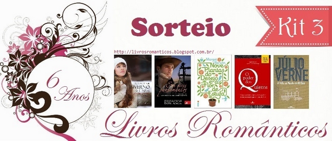 Oi pessoal! O mês de setembro aqui no blog estará recheado de promoções! Dessa vez, para comemorarmos o aniversário de seis anos do Livros Românticos, 25 blogs se juntaram para fazer uma festa! Serão 25 livros, divididos em cinco kits que premiarão cinco leitores sortudos.