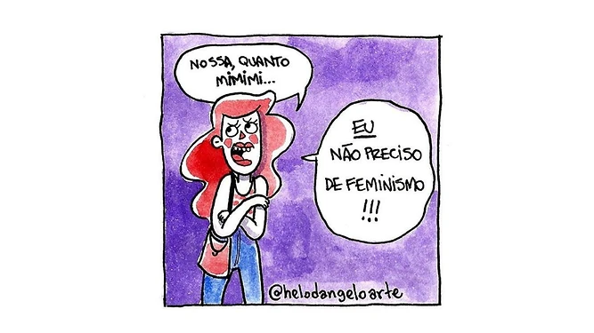 Foi não só com o humor contagiante dos seus quadrinhos, mas também com sua precisão ao traduzir de maneira simples, em situações e personagens corriqueiras, referências feministas, antirracistas e dos direitos humanos, que Helô D’Angelo conquistou um público cativo, chegando a mais de 120.000 seguidores no Instagram. As vantagens, e também as contradições e idiossincrasias de uma plataforma que dissolve aquele distanciamento com o leitor sobre o qual se pautava tradicionalmente a linguagem dos quadrinhos, pesam, diz a artista, sobre o seu trabalho com uma leveza delicada, com as certezas de uma linguagem que impõe formas muito precisas sobre o que é produzido e, simultaneamente, abre um relacionamento único com o público.
