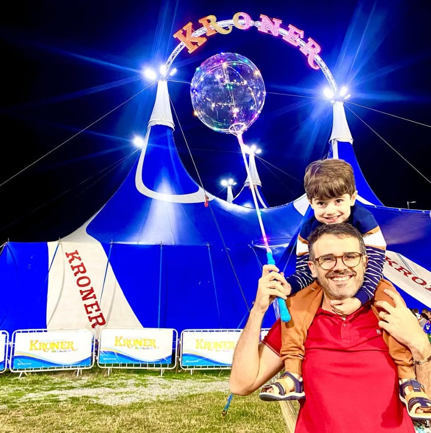 Pensei tudo isso enquanto buscava fôlego diante de tantas criaturas daquele Olimpo. Comigo, meu filho de quatro anos fazia seu queixo conhecer o peito. Nos seus olhos e sorriso eu tive a certeza do sonho em ser artista de circo e a compreensão – do seu jeito, no seu tempo – da verdadeira Graça da existência.