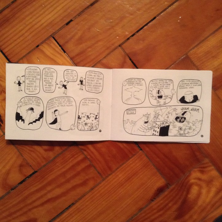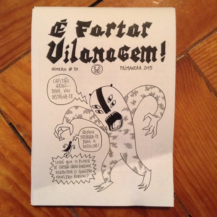 Nem só de descontos inexplicáveis vive a Feira do Livro. Para além dos alfarrabistas, onde se encontram sempre pequenas pérolas livrescas a troco de poucas moedas, há os encontros, esses momentos de festa em que pomos a conversa em dia com gente que raramente vemos, ou que vamos vendo sem tempo para conversar. Entre os jacarandás e as farturas, o Alexandre Esgaio passou-me um exemplar da mais recente edição (nº 10) de É Fartar Vilanagem!, um fanzine com pergaminhos entre os que têm a felicidade de conhecer o seu autor ou de ir espreitando o que faz.